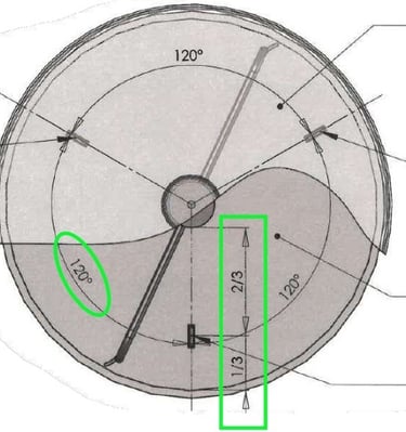 La sonda se coloca con la punta en el sentido de la rotación de los brazos.