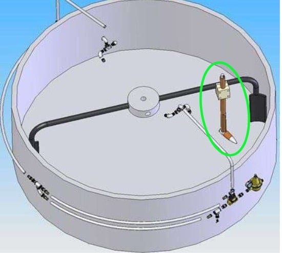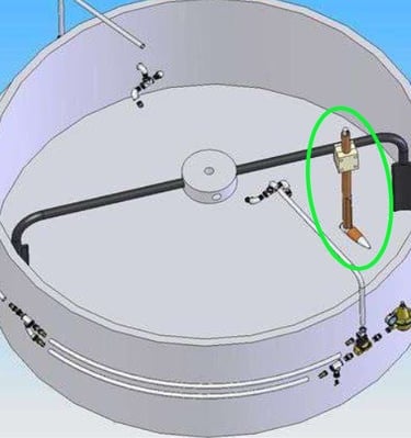 La sonda debe de colocarse a 1/3 del borde exterior con respecto a la pared interior de la mezcladora.